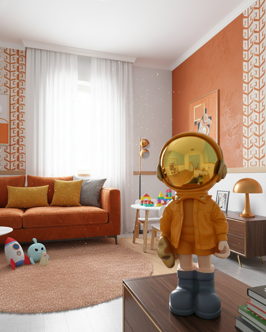 ASTROBOY non ha bisogno di funzionalità aggiuntive per farsi notare. La sua forza è tutta estetica. Arricchisce l’ambiente con una presenza decisa ma equilibrata. Ideale come elemento d’accento in salotto, ufficio o spazio creativo. Dona profondità visiva e carattere all’arredamento. Un complemento che completa lo spazio senza appesantirlo.