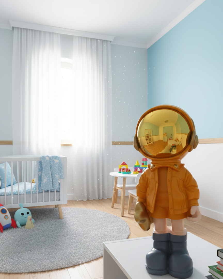ASTROBOY si distingue per una forma unica e immediatamente riconoscibile, ispirata al mondo spaziale e al design contemporaneo. Ogni dettaglio è studiato per trasformare la scultura in un punto focale dell’arredo. Posizionata su una scrivania, una mensola o un mobile, diventa subito protagonista. È un oggetto che comunica stile anche a distanza. Perfetta per chi ama pezzi decorativi con una forte personalità.