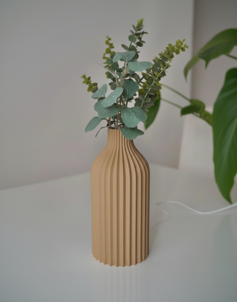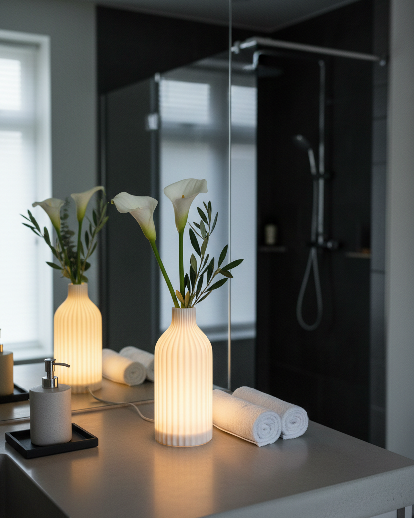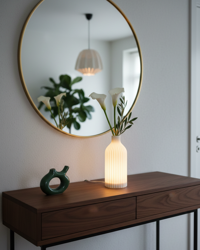 La lampada Eclissi non è un semplice oggetto, ma il risultato di una visione moderna dell'artigianato. Ogni pezzo è realizzato da noi attraverso la stampa 3D, un processo che ci permette di creare texture scanalate impossibili da ottenere con i metodi tradizionali. Il design non serve solo a illuminare, ma a trasformare i tuoi fiori e le tue piante in sculture di luce, risolvendo il problema degli angoli di casa bui o privi di personalità.