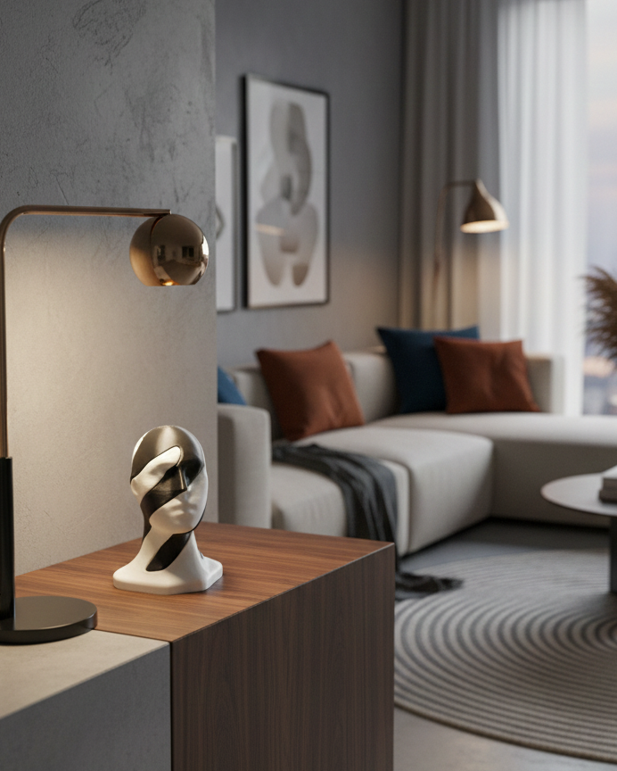 La forma astratta e contemporanea si integra con ambienti moderni, minimalisti, scandinavi o creativi. Posizionata su una mensola, una scrivania o un mobile d’ingresso, diventa un punto di conversazione e un elemento che valorizza il design degli interni.