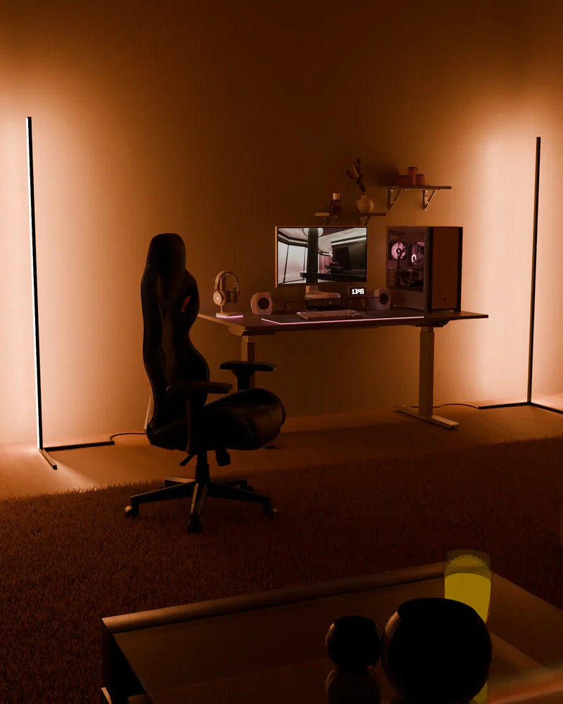 LUMOS non è una semplice lampada, ma un elemento d'arredo progettato per chi vuole ridefinire l'atmosfera dei propri spazi senza ingombrare. Grazie alla sua struttura sottile e ultra-minimalista, si posiziona con discrezione negli angoli meno sfruttati, proiettando una luce vibrante e uniforme che elimina le ombre nette. È la soluzione ideale per chi lavora da casa, per i gamer che cercano un setup immersivo o semplicemente per chi desidera un salotto accogliente. Risolve il problema delle lampade ingombranti e delle luci troppo dirette, offrendo un'illuminazione d'accento che si adatta a ogni identità della tua giornata.