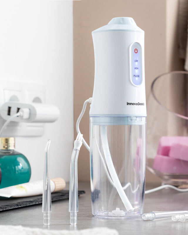OralFlow è l’idropulsore dentale compatto e ricaricabile progettato per migliorare la tua routine quotidiana con una pulizia più efficace e confortevole. Grazie al potente getto d’acqua regolabile, rimuove facilmente residui di cibo e impurità anche negli spazi più difficili da raggiungere. Perfetto per chi porta apparecchi, per chi desidera gengive più sane o semplicemente per chi vuole un’igiene più accurata. Il suo design portatile lo rende ideale sia per l’uso domestico che in viaggio.