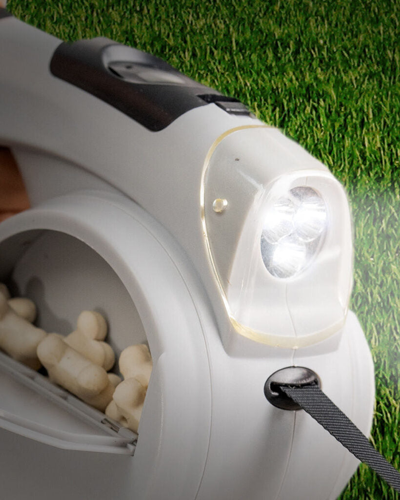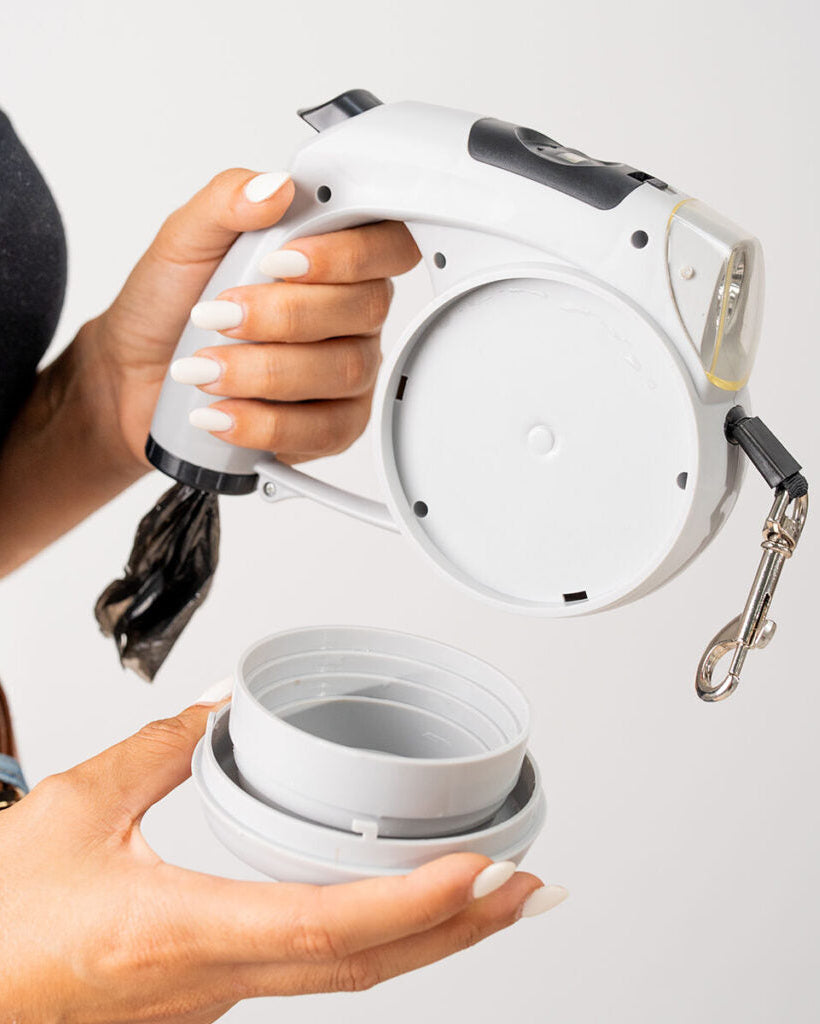 PetLulu include tutto ciò che serve per una passeggiata completa: contenitore per sacchetti igienici, ciotola pieghevole da viaggio e luce LED per una migliore visibilità serale. Ogni accessorio è integrato direttamente nel corpo del guinzaglio, così non devi portare nulla in più. Perfetto per essere organizzato in ogni momento.